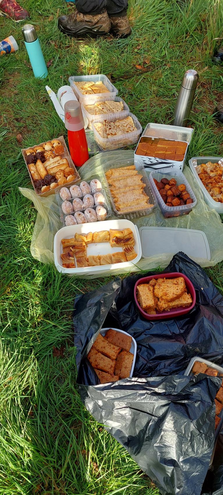Parmi les 23 personnes présentes, 13 sont des randonneurs qui avaient pour mission aujourd'hui de confectionner un gâteau (ou autres productions salées) pour la pose " casse-croûte". Et le message est bien passé: Mission Accomplie !!! car la "nappe" n'était pas assez grande pour mettre en valeur toutes ces préparations....crêpes, canelés, cakes ( salés ou sucrés), "coupetade" (ou pain perdu), tartes ......que de gourmandises toutes aussi ppétissantes les unes que les autres. A tel point que Mesdames les Randonneuses ont envie de renouveler l'expérience plus souvent !!!!!