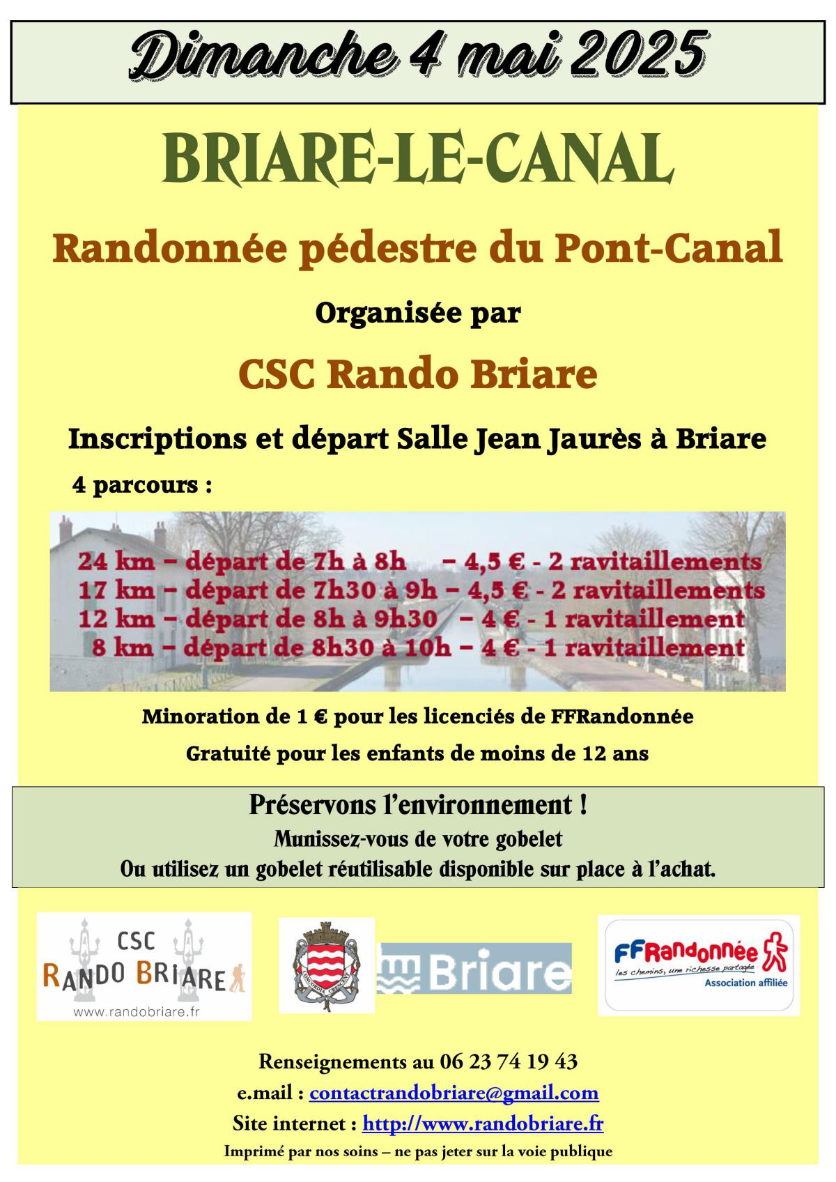 le dimanche 03 mai 2026 pour une randonnée sur les chemins de Briare et autour de Briare.