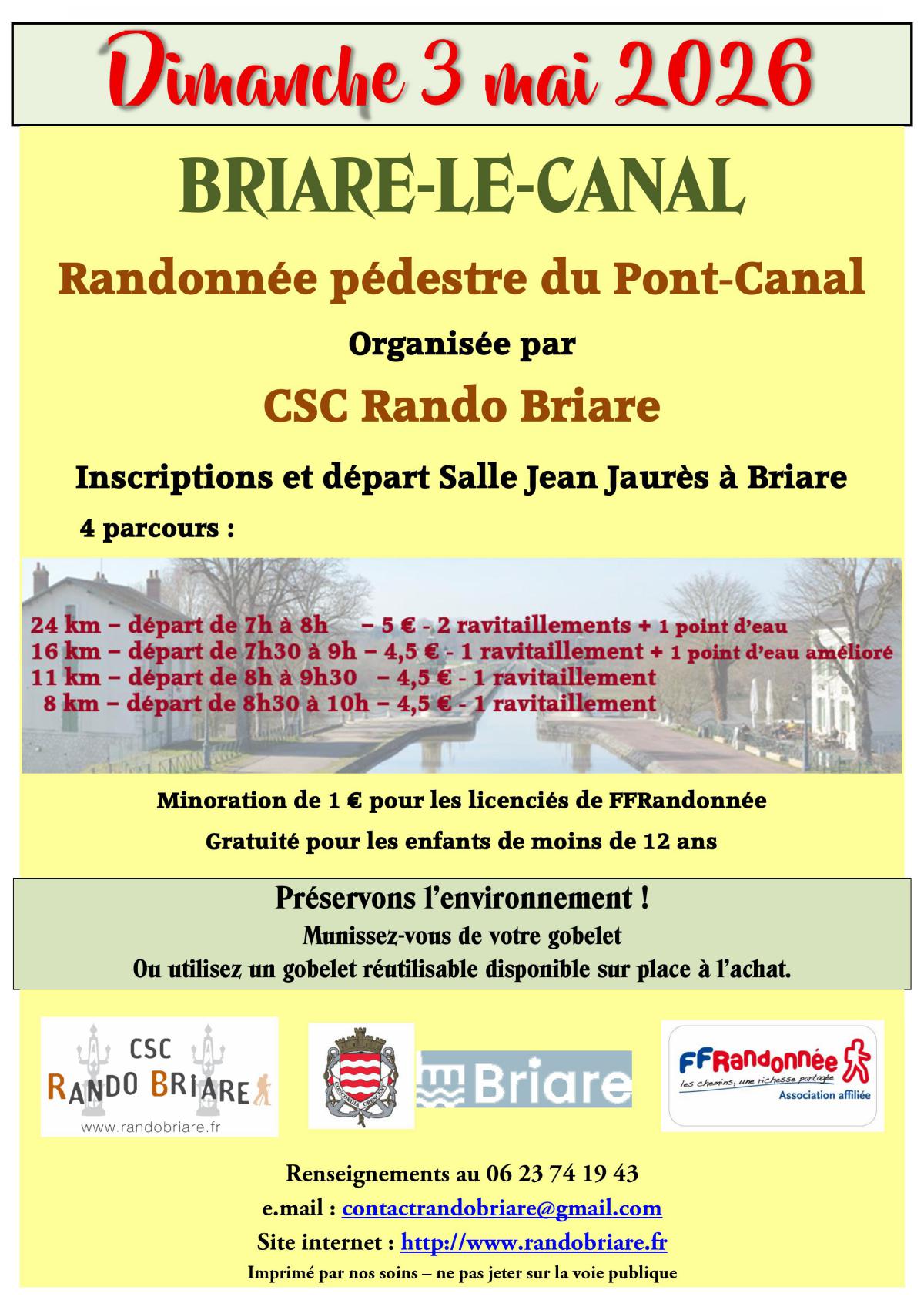 le dimanche 03 mai 2026 pour une randonnée sur les chemins de Briare et autour de Briare.